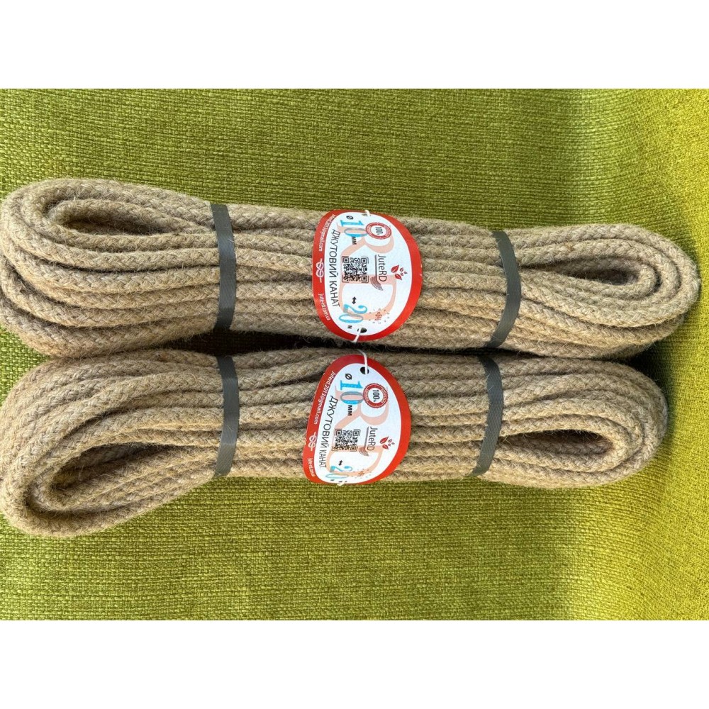 Плетений джутовий канат без кольорового маркеру 10 мм 20 метрів
