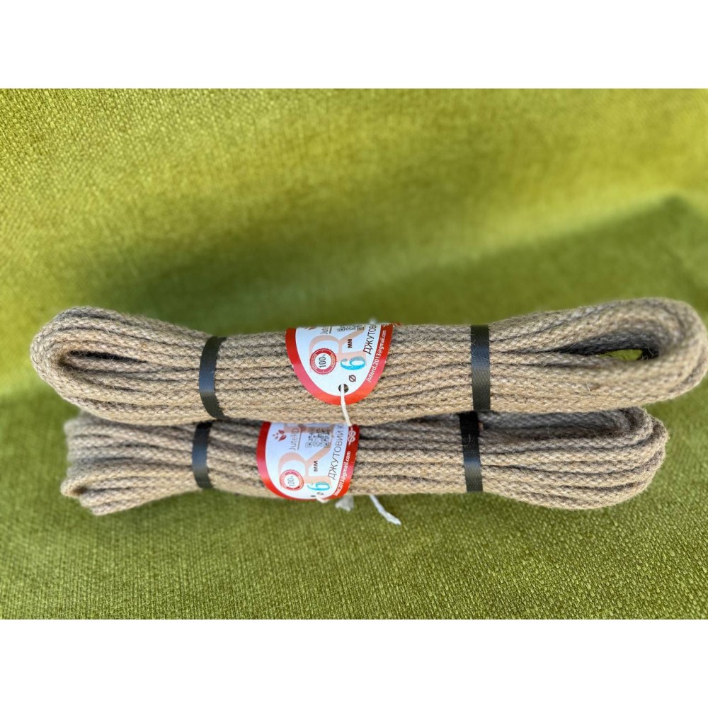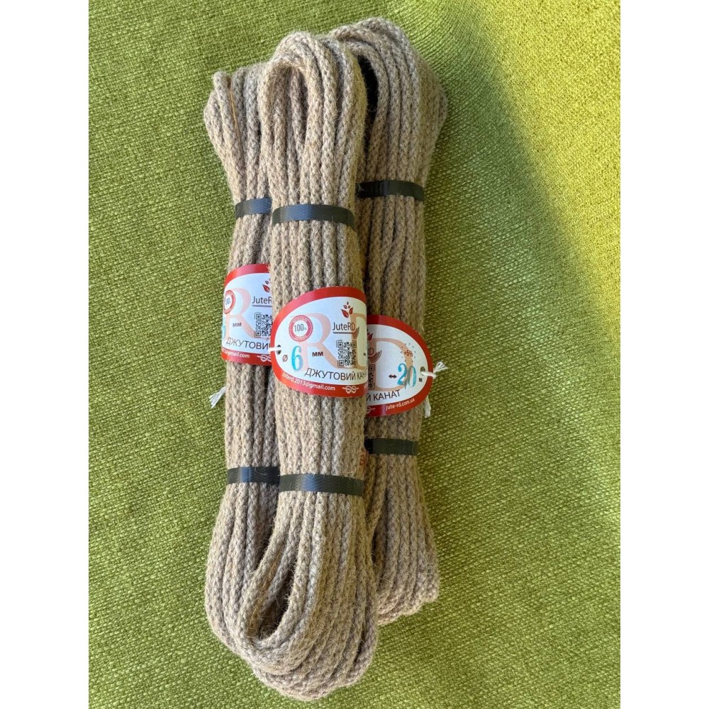 Плетений джутовий канат без кольорового маркеру 6 мм 20 метрів